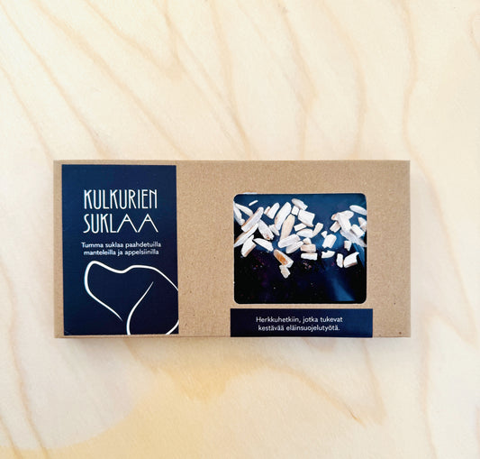 Kulkurien tummasuklaa paahdetuilla manteleilla & appelsiinilla