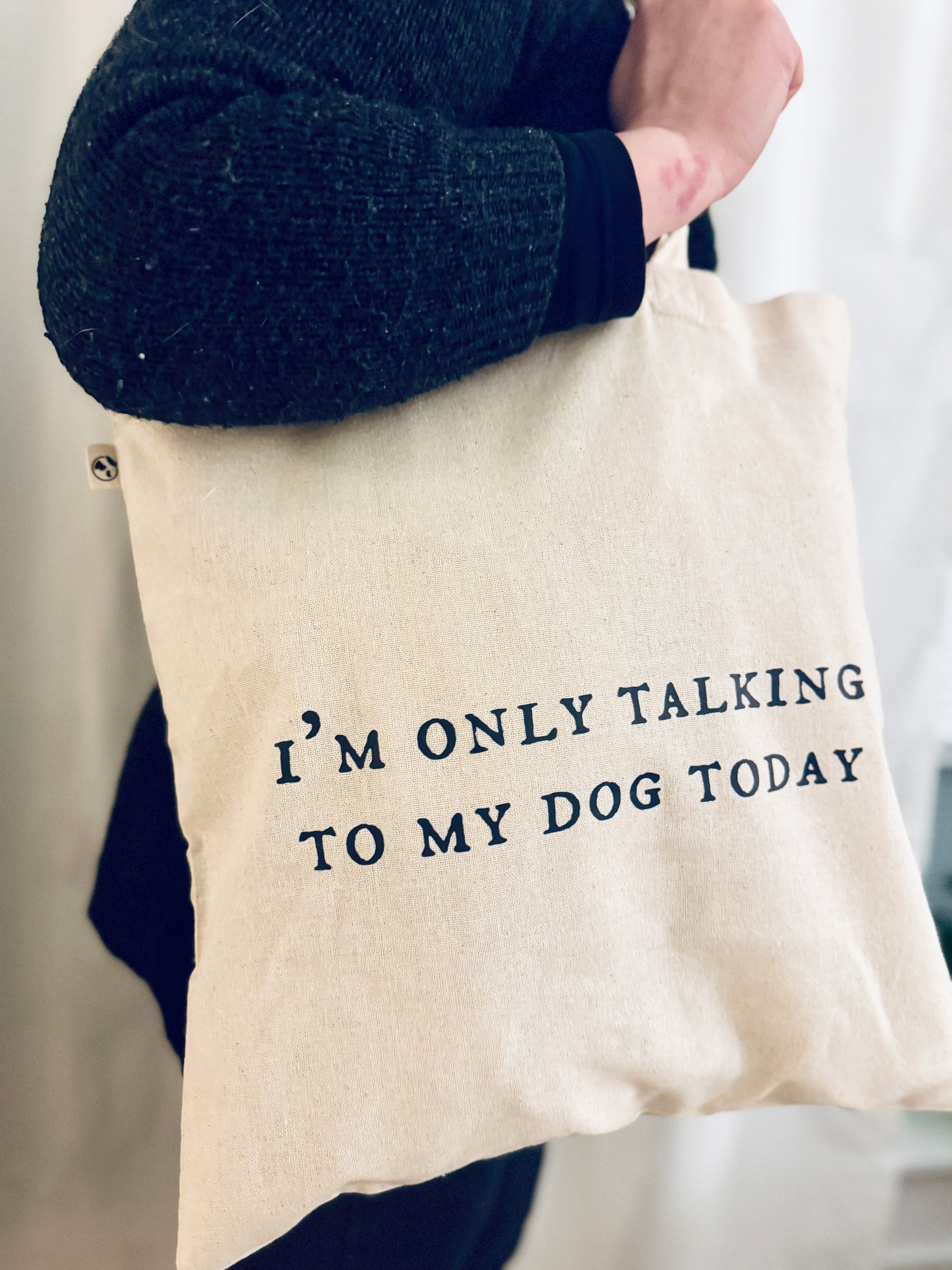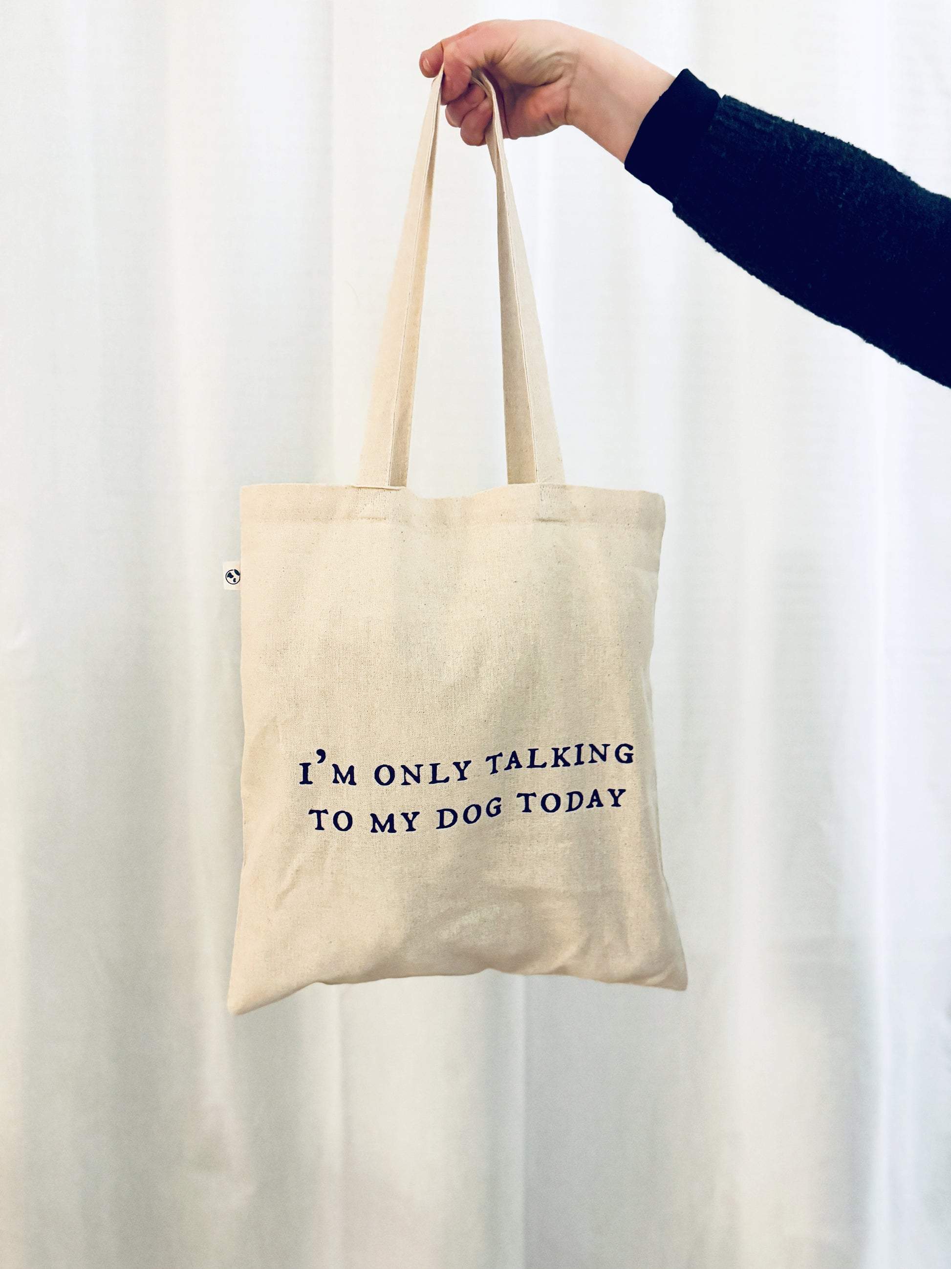 Hauska kangaskassi niille päiville, kun koirasi on yksinkertaisesti paras ja ainoa keskustelukumppani. Tämä kassi sopii täydellisesti koirapuistoon, ostoksille tai arkireissuille – ja saa taatusti hymyn toisten koiraihmisten huulille.