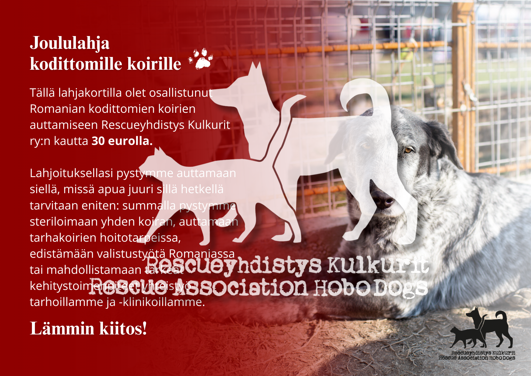 Ostamalla tämän kauniin lahjakortin tuet kestävää eläinsuojelutyötä. Loistava ja eettinen joululahjaidea!