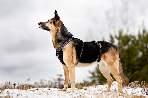 - lisäosa varmistaa valjaan pysymisen koiran yllä
